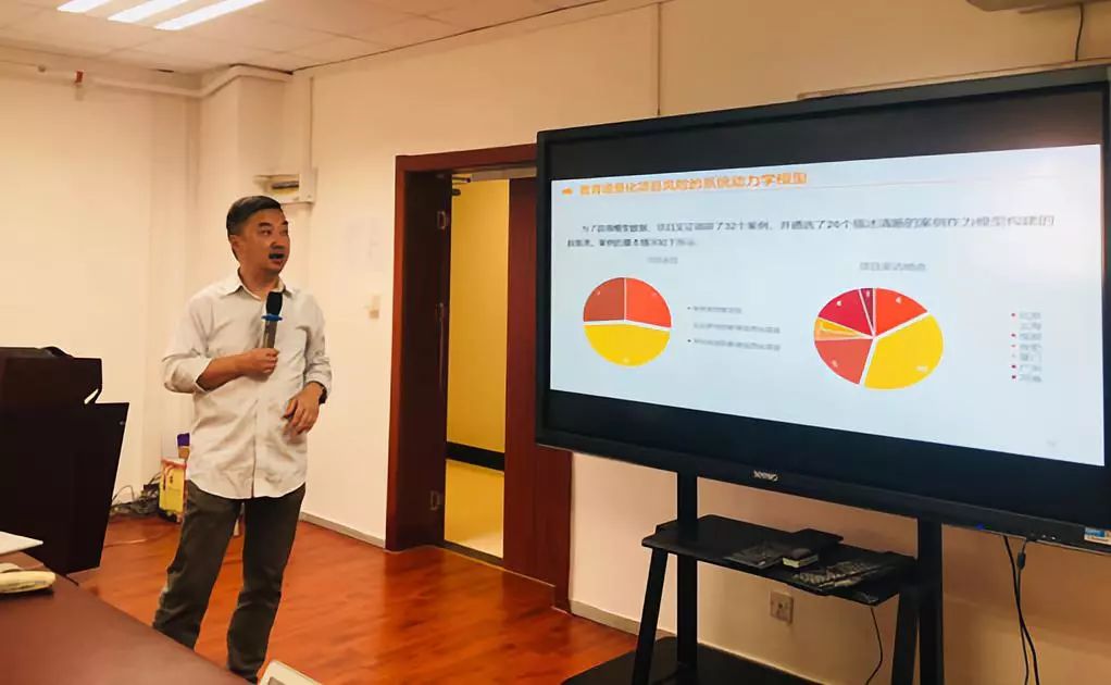 第一位汇报的老师是钱冬明老师。钱老师以“教育信息化项目风险管理研究”为题为我们带来了精彩的分享。钱老师从问题源起、研究成果、案例分析和未来展望四个方面简要介绍了他的研究项目。我国每年都对教育项目投入了大量的资金与人力物力,但是很多项目以失败告终,没有达到预期成果,因此钱老师团队着手研究教育信息化项目的风险管理。该项目建立了一套风险评估体系,从主体风险、技术风险、客体风险、财务风险和政策风险这几个方面对项目的整体风险进行评估,并开发了相关软件,以可视化的方法呈现各个维度的风险得分。为了加深听众对该项目的理解,钱老师以电子书包项目的风险评估为案例进一步讲解。关于该课题的未来展望,钱老师认为要进一步量化风险要素,梳理要素间的逻辑关系;要采集更多失败的教育信息化项目的相关信息,丰富调研数据;并认为接下来的研究要聚焦风险的过程性评估,生成教育信息化项目风险管理模块API。
