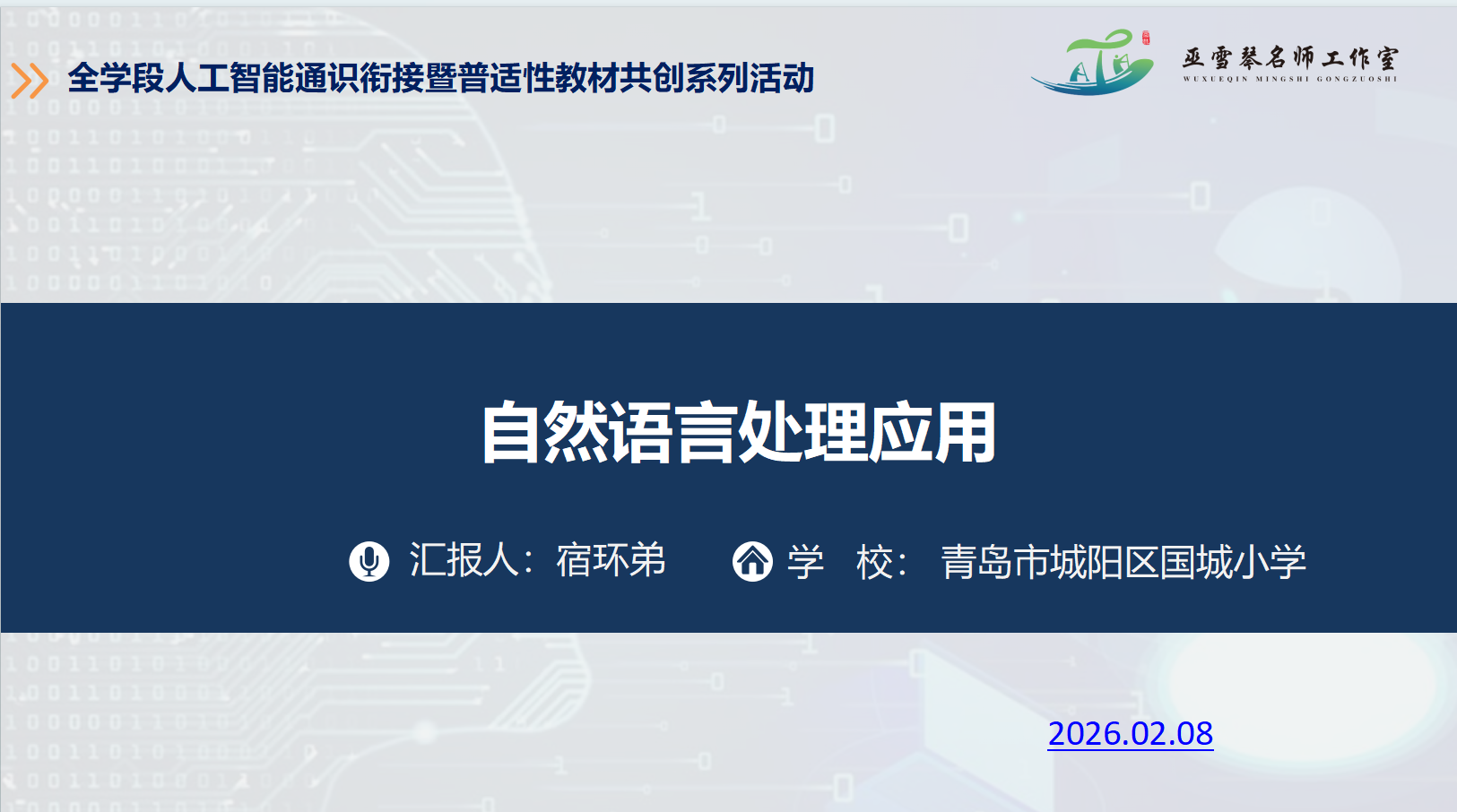 2026年2月8日晚,全国中小学人工智能通识集体备课暨普适性教材共创系列活动第三期——“自然语言处理应用”线上专题备课活动成功举办。本次活动由中国教育学会中小学信息技术教育专业委员会主办,巫雪琴、陆平等多个名师工作室联合承办,全国各参与省市名师工作室协办,旨在凝聚全国名师智慧,共同破解人工智能通识教育落地难题,推动课程体系化建设与教师专业发展。